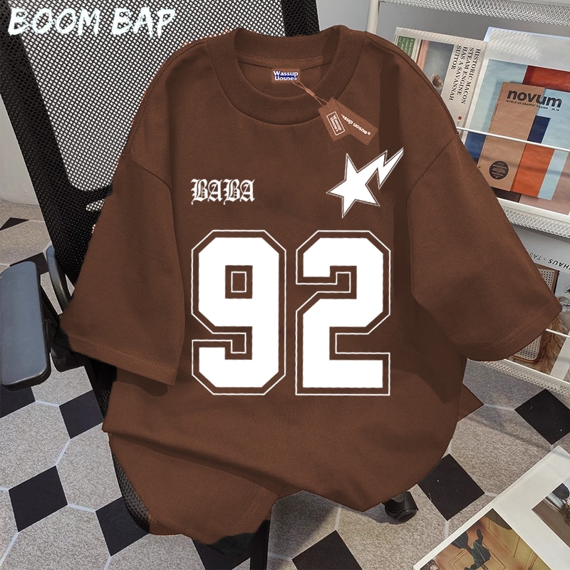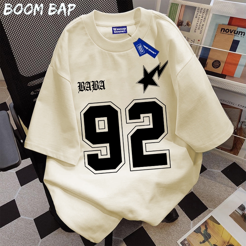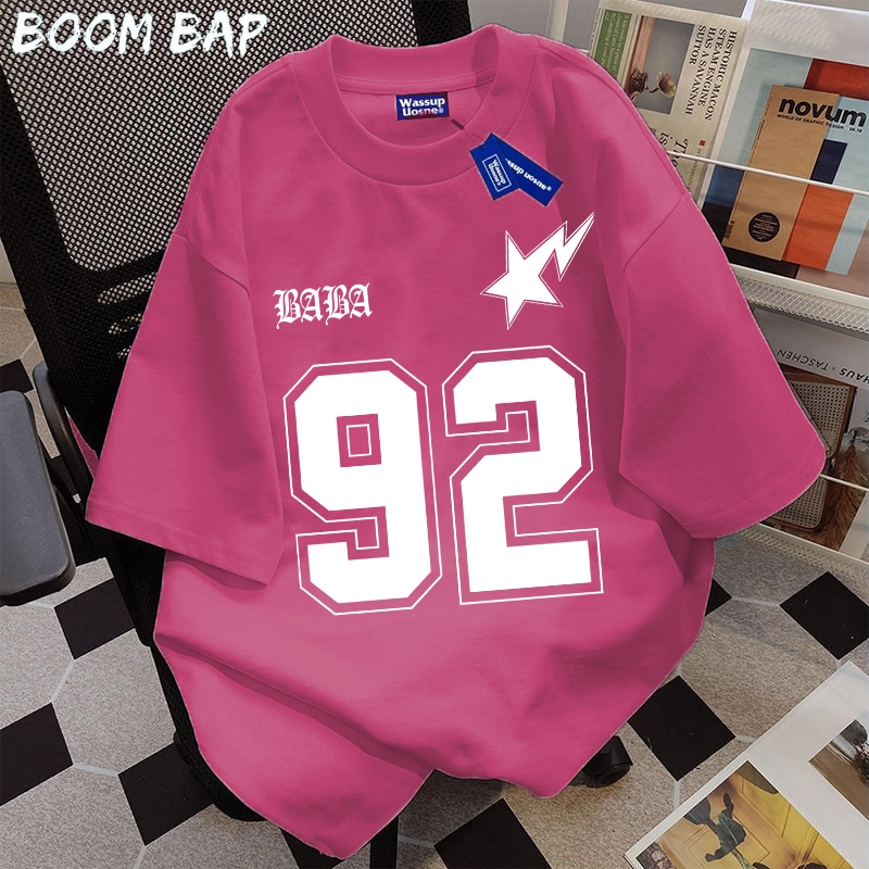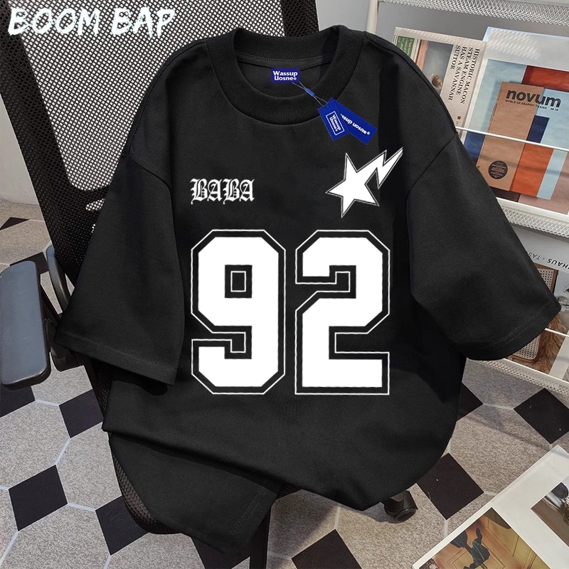 BOOMBAP American retro Style T-shirt Oversize Nomor 92 Print top Kaos Wanita Hitam Kaos pria dan wanita Street Style 100 PERSENCotton top 8.18