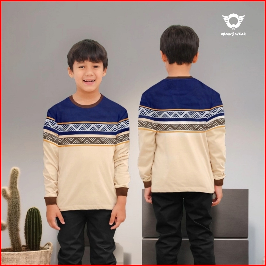 Baju Anak Lengan Panjang Laki-laki Perempuan Umur 1 - 12 Tahun Katun Orkids Ethro Denim Cream