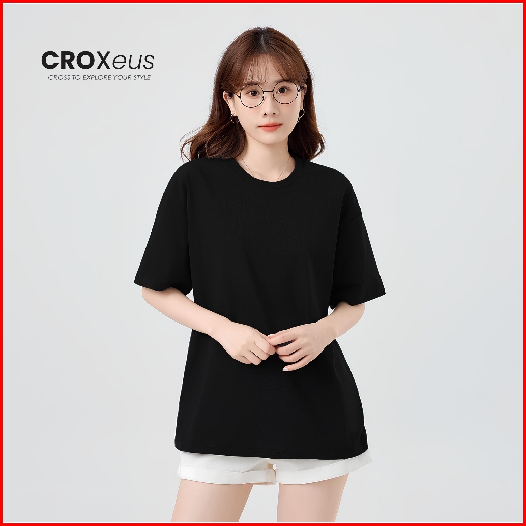 Croxeus Kaos Polos Hitam Wanita Lengan Pendek Soft Cotton