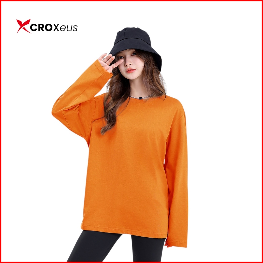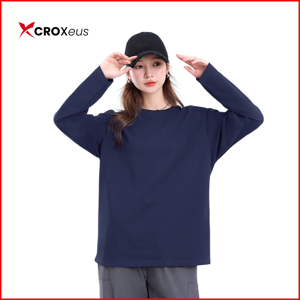 Croxeus - Kaos Polos Wanita Lengan Panjang Bahan Katun - Navy