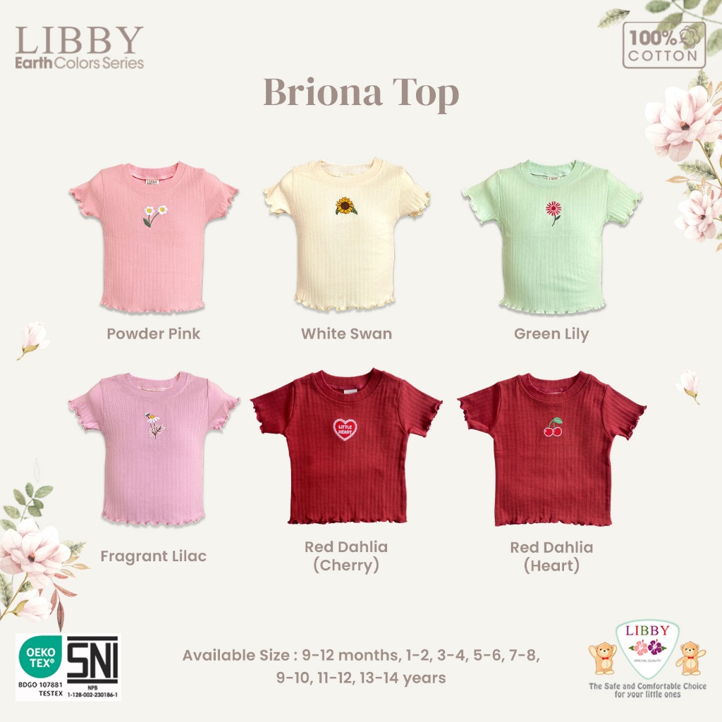 LIBBY Atasan Anak Perempuan Ruffle Kaos Polos Briona Top Usia 9 Bulan - 14 Tahun (1PCS)