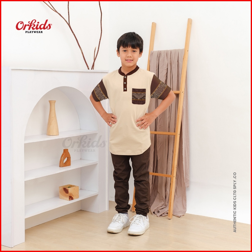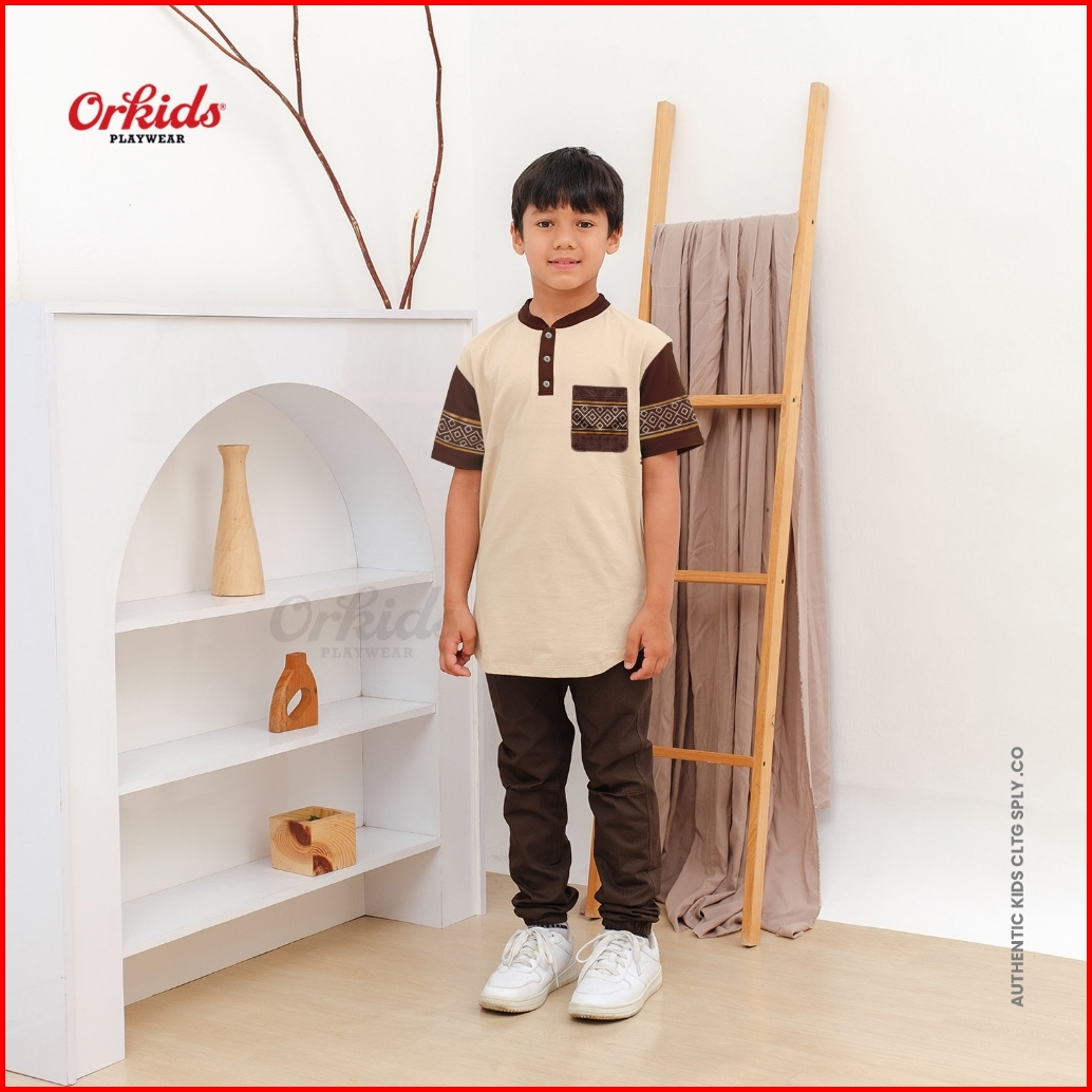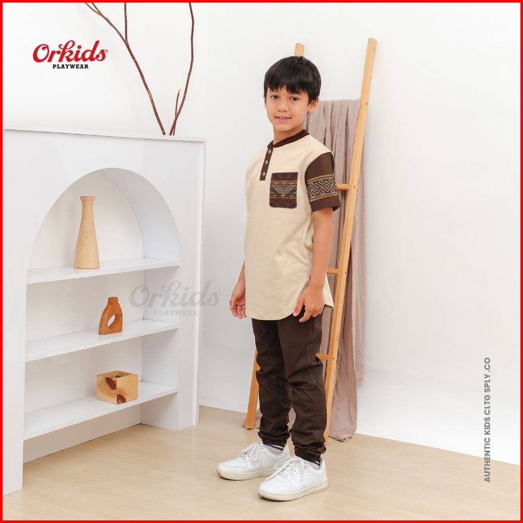 Baju Koko Kaos Kurta Anak Laki Laki 1 - 12 Tahaun Kerah Mandarin Shanghai Fazza Cream