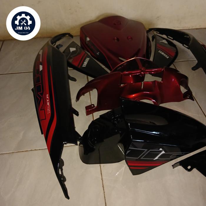CICILAN TANPA DP COVER BODY HALUS MOTOR YAMAHA MIO J PLUS STRIPING WARNA HITAM MERAH