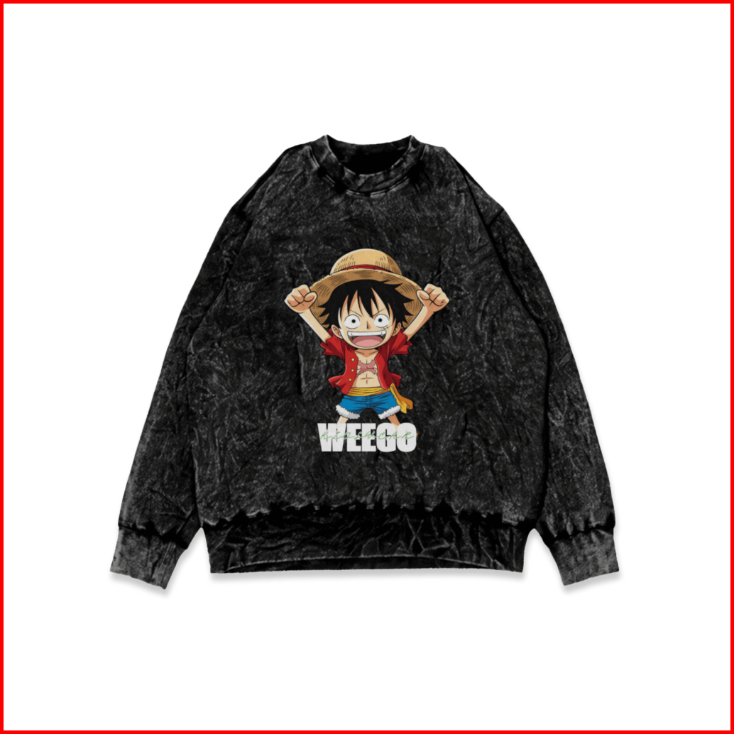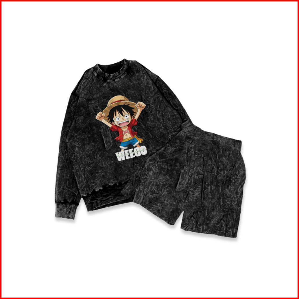 Weego - Setelan Kaos Anak Washing Lengan Panjang - Setelan Kaos Lengan Panjang Motif One Piece Celana Pendek - Unisek Un