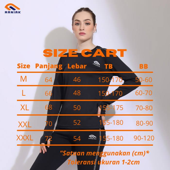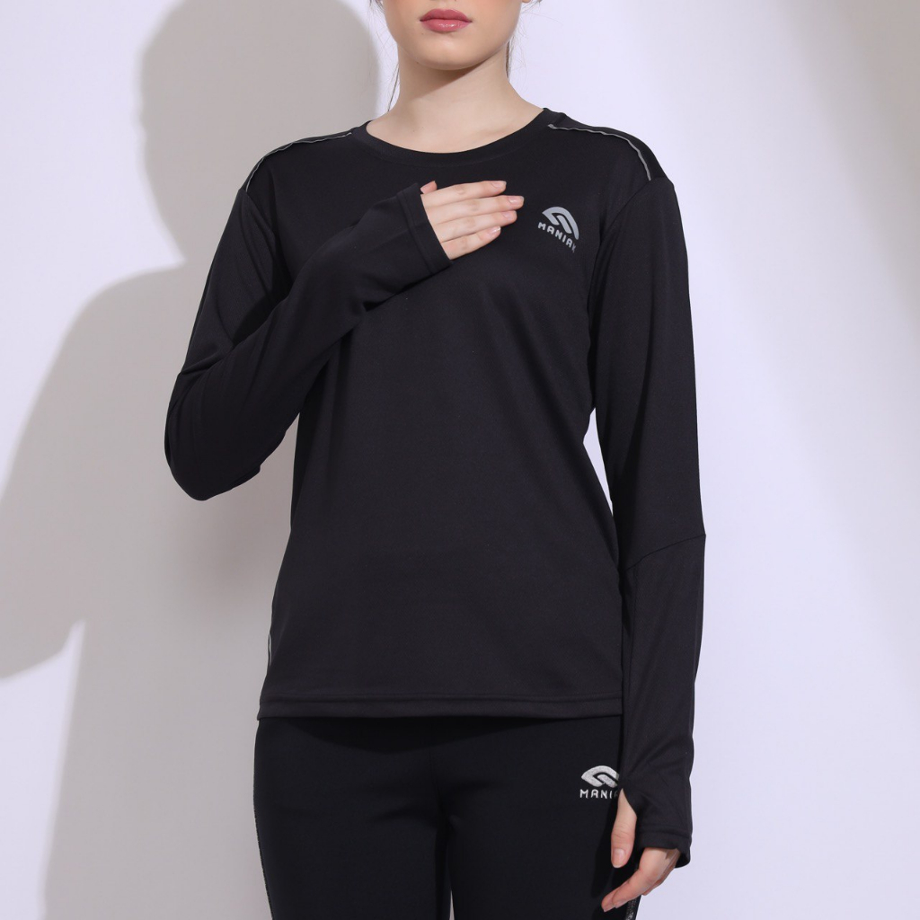 MANIAK Baju Olahraga Lengan Panjang Wanita Kaos Atasan Running Lari Sporty Gym Senam Zumba Yoga Sepeda (BMW 02 L/S)