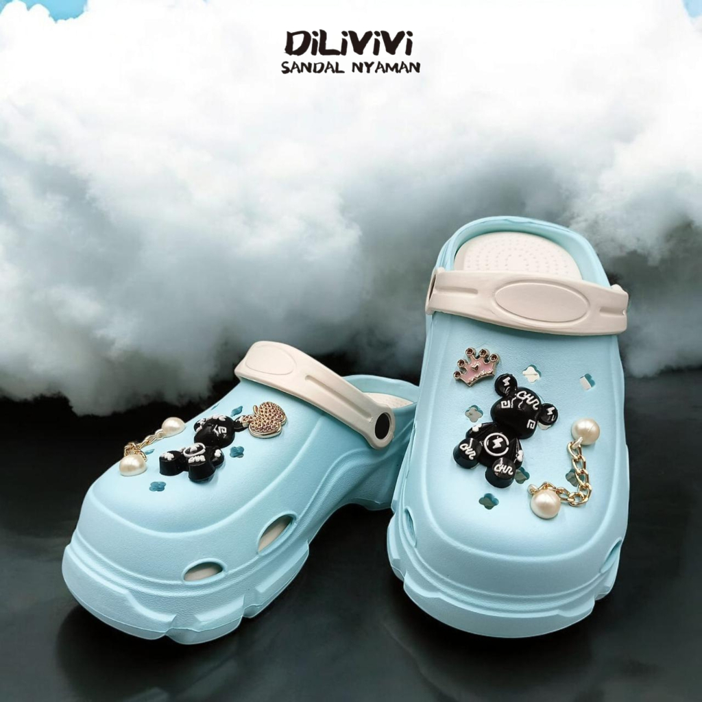 DILIVIVI 832EF | Sandal Baim Anak Perempuan Wedges Jibbitz Bear Size 24-35