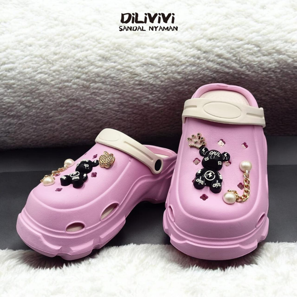 DILIVIVI 832EF | Sandal Baim Anak Perempuan Wedges Jibbitz Bear Size 24-35