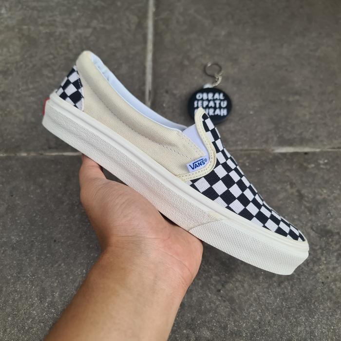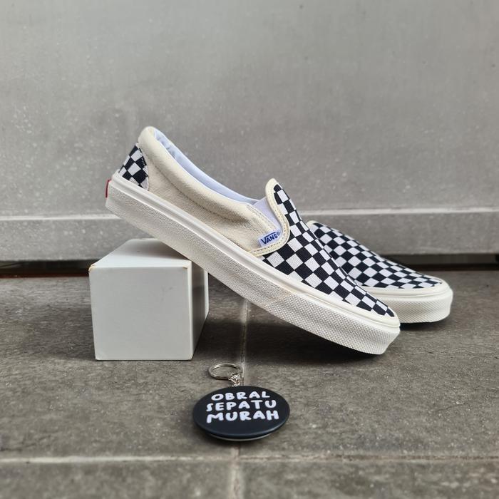 CICILAN TANPA DP OBRAL SEPATU VANS SLIP ON VAULT OG CHECKERBOARD PUTIH KREM KOTAK CATUR KOTAK OG KREM 36