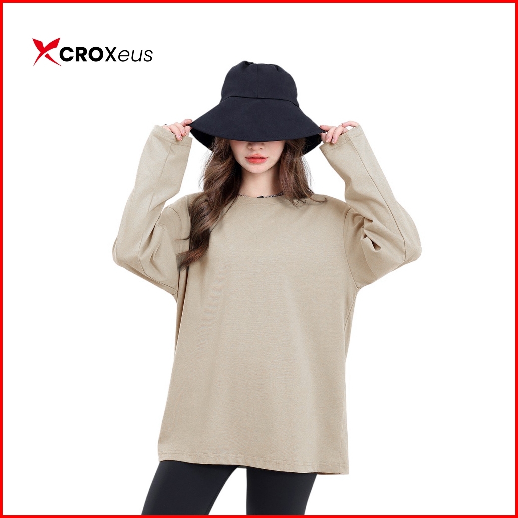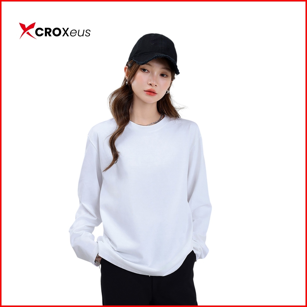 Croxeus - Kaos Polos Putih Wanita Lengan Panjang Bahan Katun Supersoft