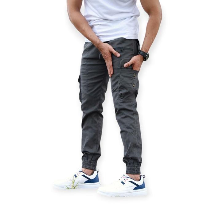 Celana Joger Cargo Pria Wanita R4-Shine Premium Katun Tebal Stretchy Sport Joger Cargo - Hitam, M
