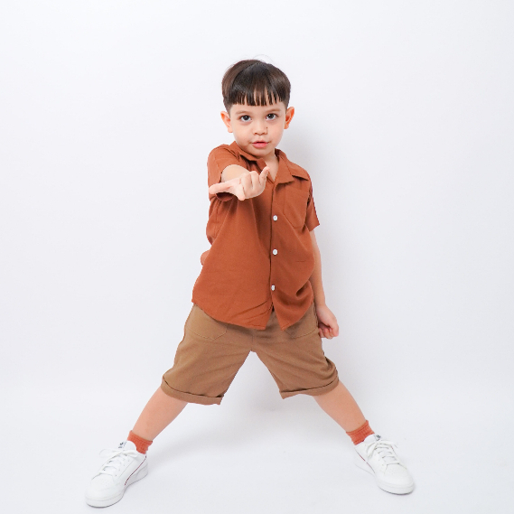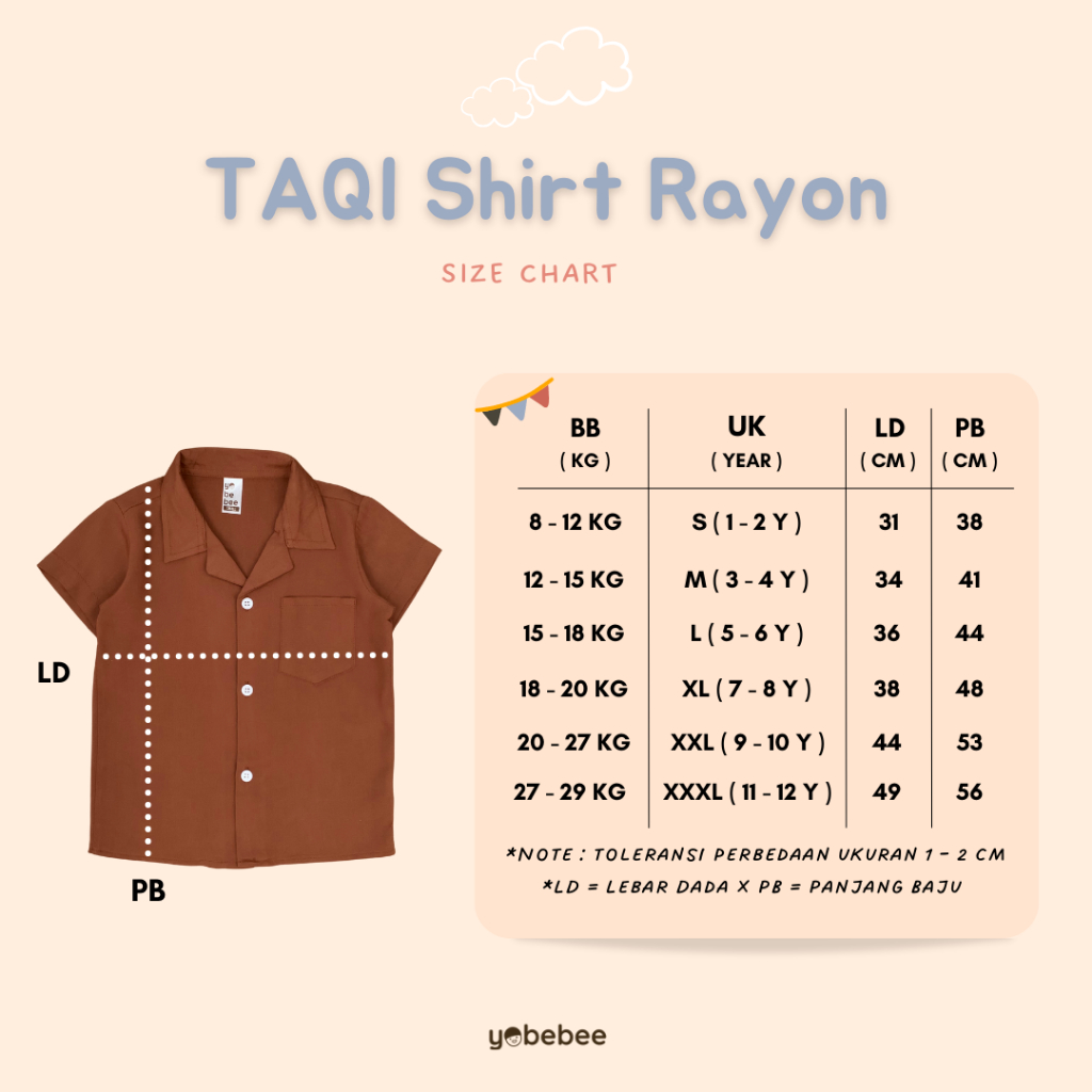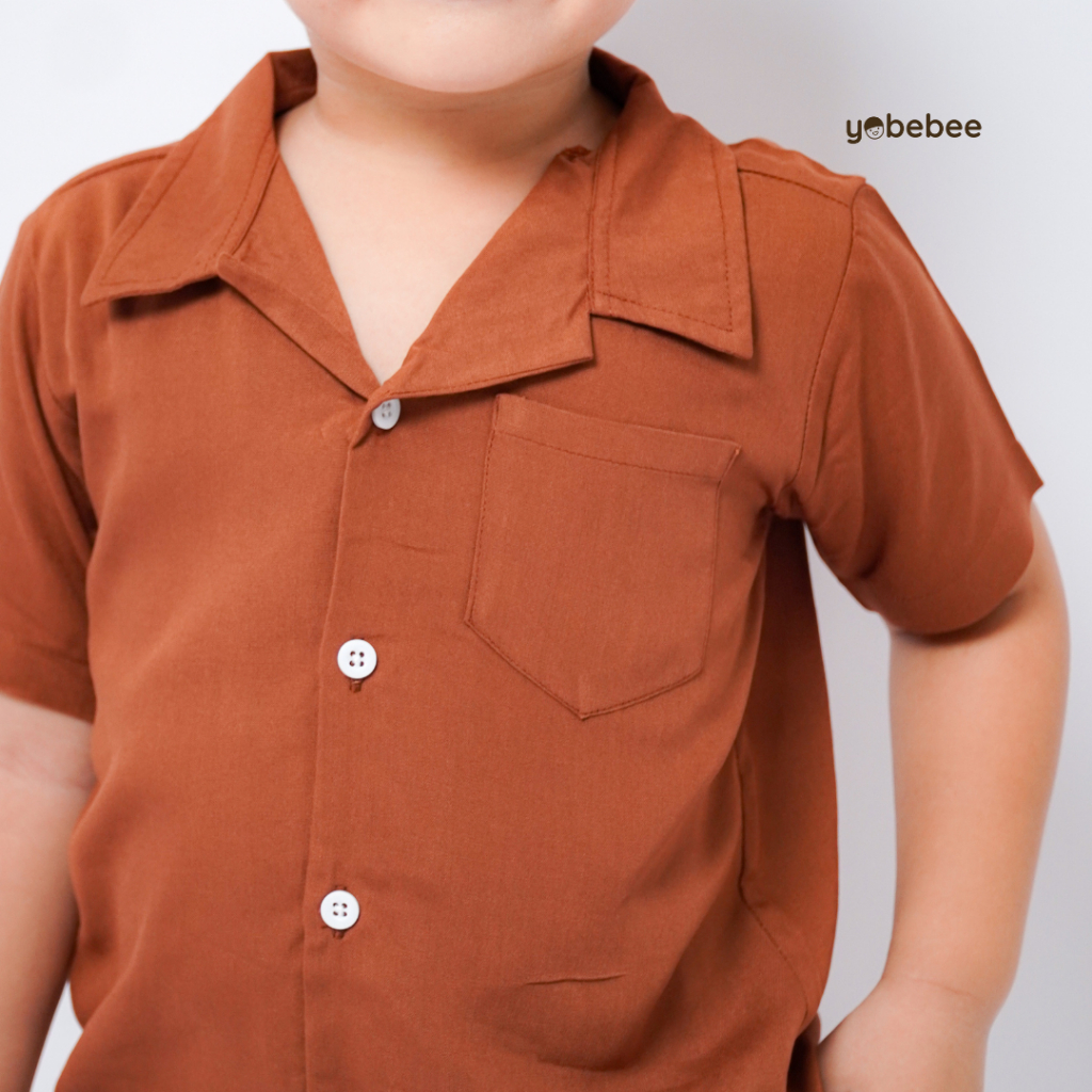 Yobebee Taqi Shirt Kemeja Rayon Anak Laki Laki Usia 2 4 6 8 Tahun Baju Atasan Kids Tangan Pendek Polos Casual Santai Kemeja Kerah Anak Cowok