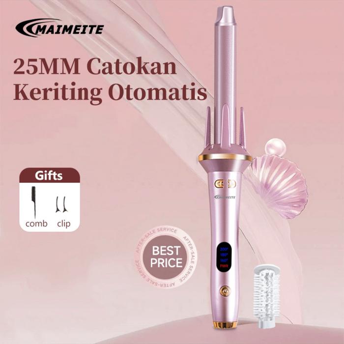 MAIMEITE x Cecevirna Catokan Curly Otomatis 25mm Catokan Keriting Rambut Otomatis Ceramics Curly - Merah Muda