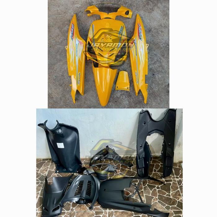 CICILAN TANPA DP COVER BODY FULL HALUS KASAR MOTOR YAMAHA MIO SPORTY+STRIPING WARNA HITAM MERAH CABE