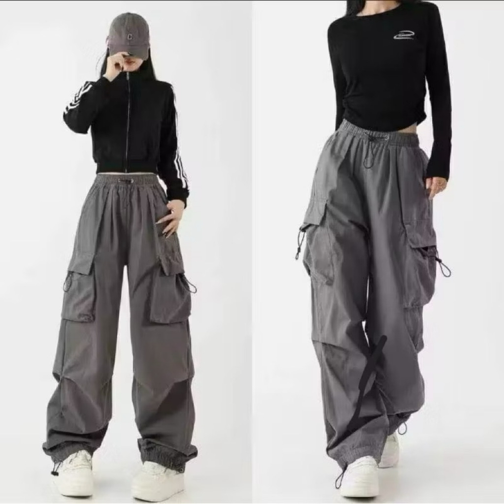 Celana cargo pants wanita highwaist loosee Korean style jumbo - celana kulot kargo serut wanita