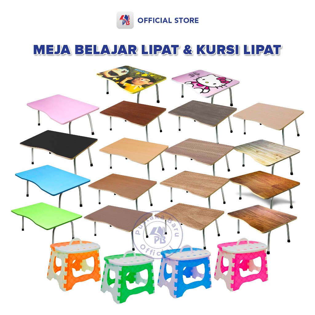 Meja Belajar Lipat / Meja Kursi lipat Portable / Meja laptop Serbaguna Bermacam Motif Kayu Dan Kursi Lipat / PB EDUKASI ANAK - PBNB