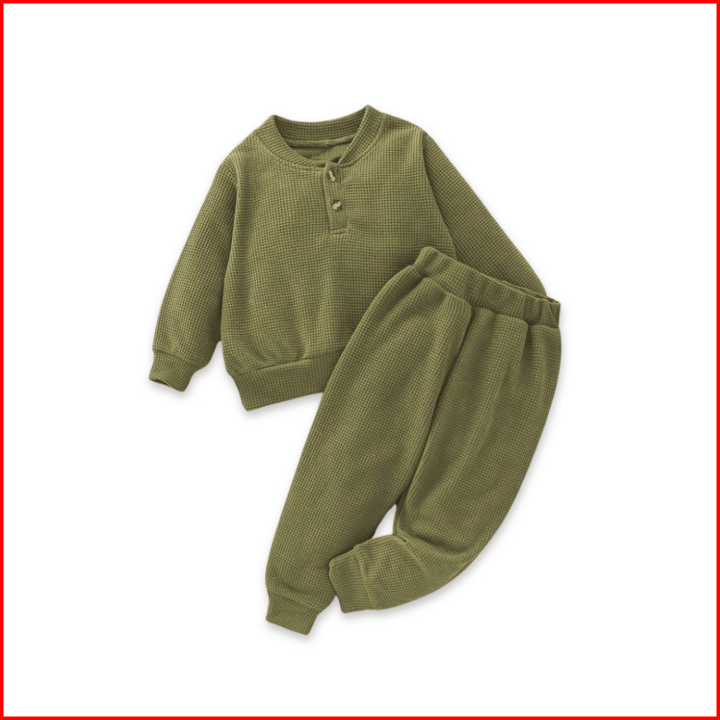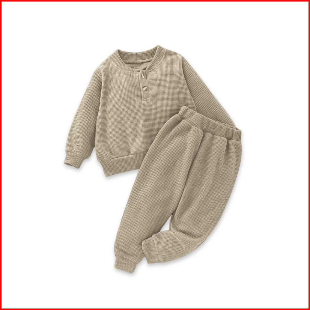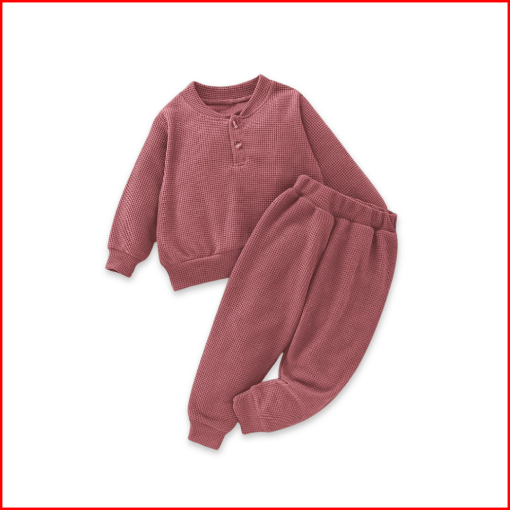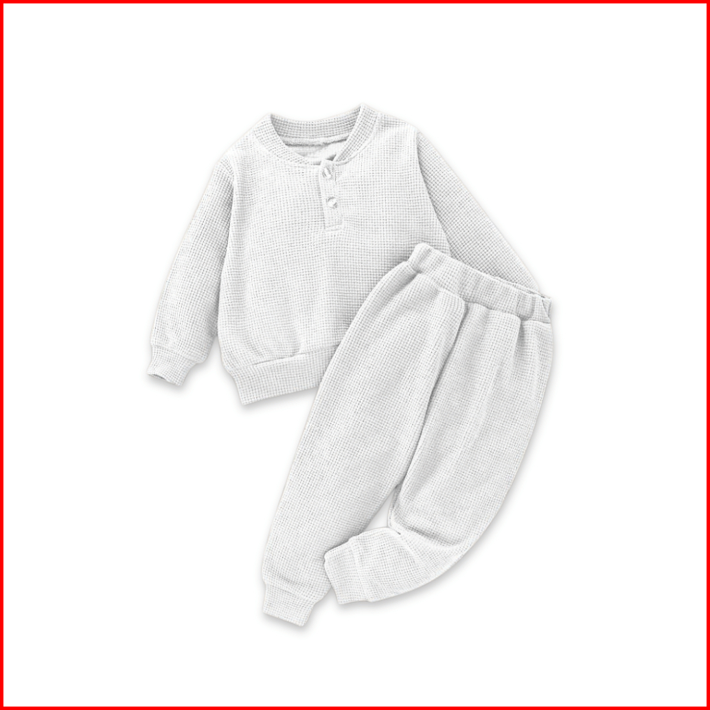 Weego - Setelan Kaos Anak - Setelan Waffle Lengan Panjang - Setelan Kaos Waffle Panjang Celana Jogger Basic - Unisek Unt