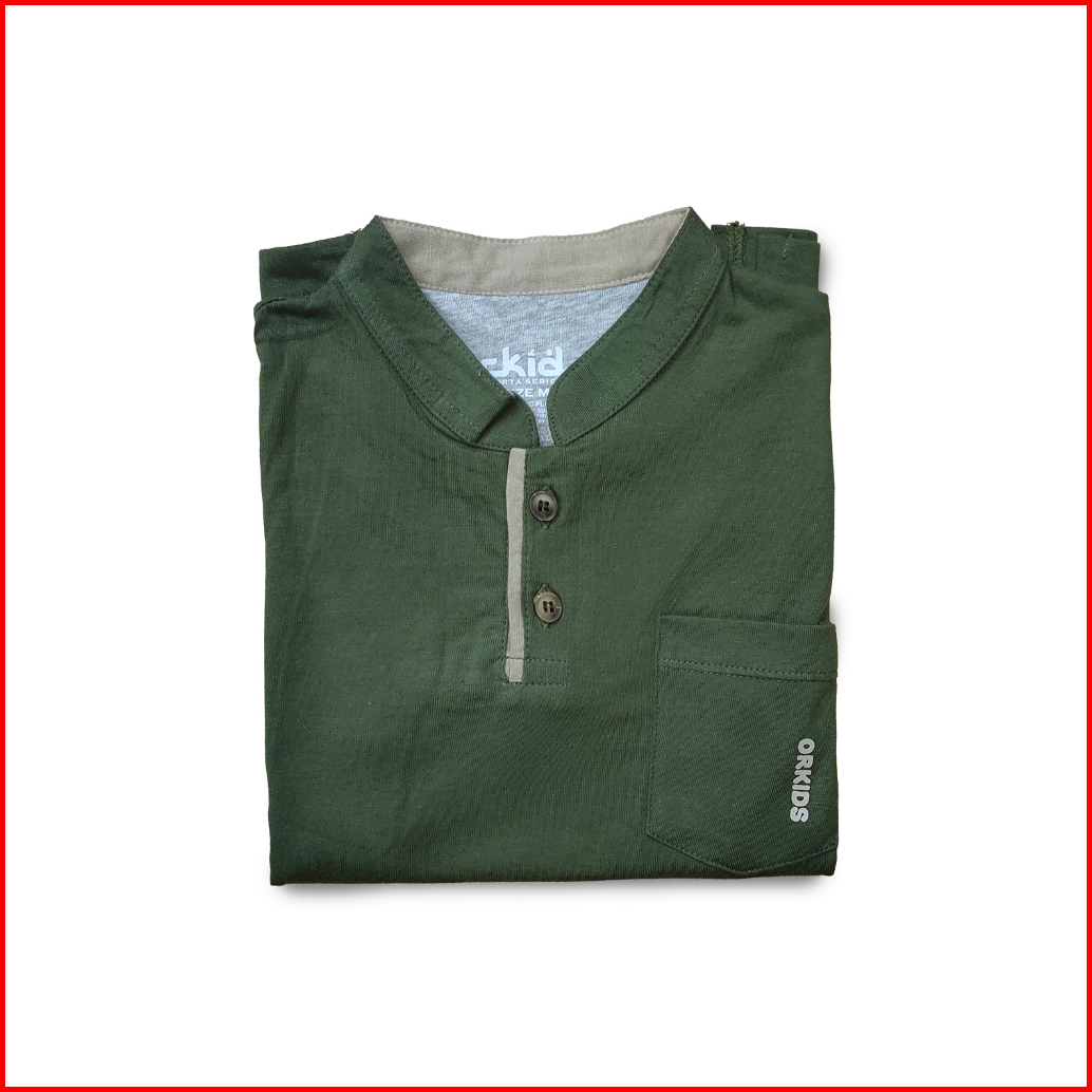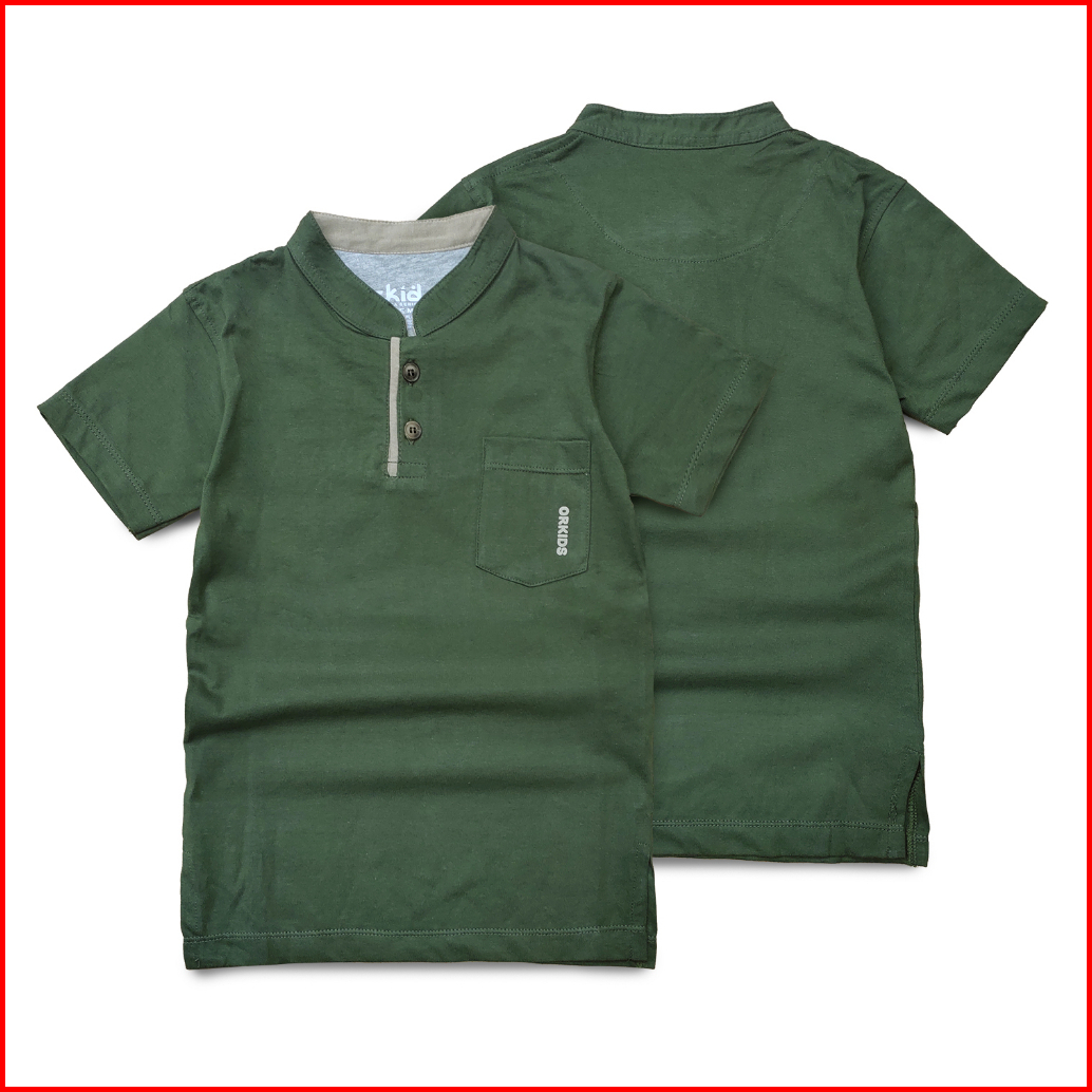 Orkids Kaos Kurta Anak Anak Laki-laki Kerah Shanghai Pakai Kantong Di Dada Moz Green
