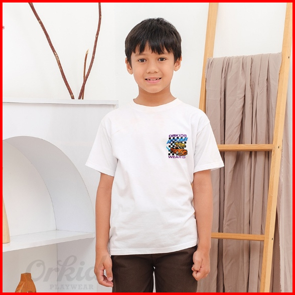 Orkids Baju Kaos Anak Laki Laki Umur 1 - 12 Tahun Distro Cowok Lengan Pendek Letsres White