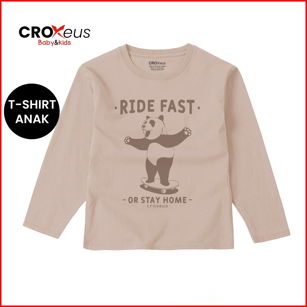 Croxeus - Kaos Anak Laki-laki Dan Perempuan Lengan Panjang Panda Warna Coklat Susu
