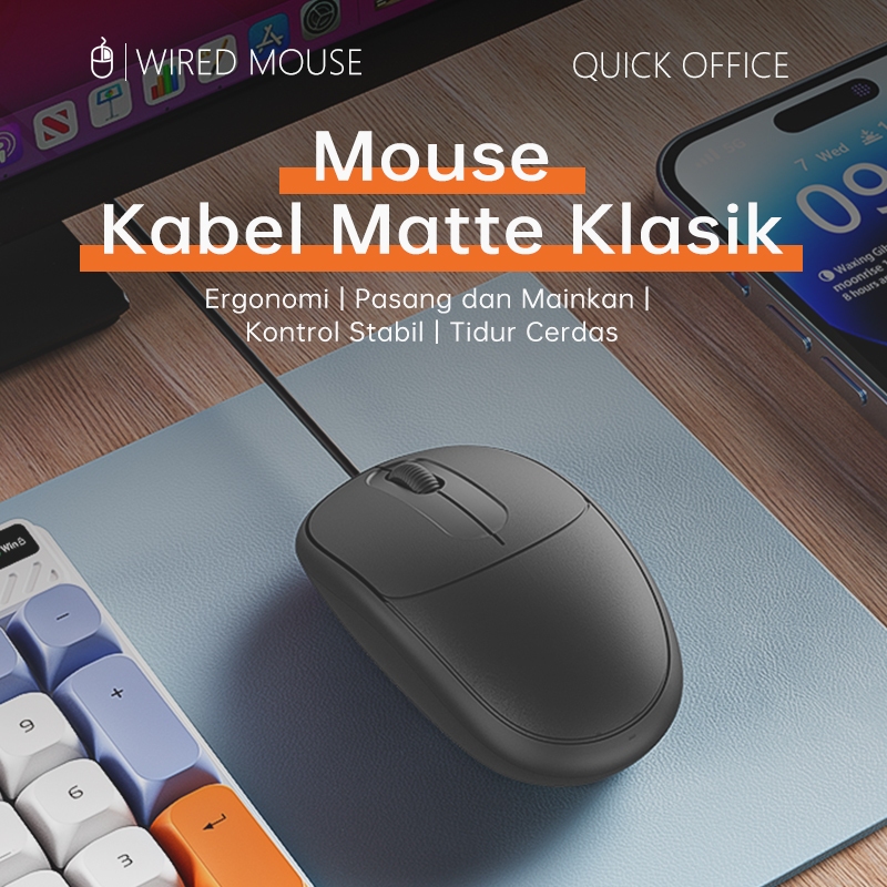 OLYPS Mouse Kabel USB Mini Optical 1000DPI Office Wired Mouse Ergonomis Desain Untuk PC/Laptop