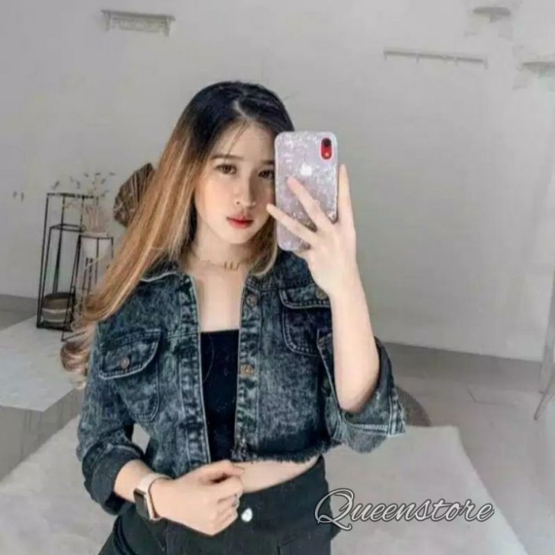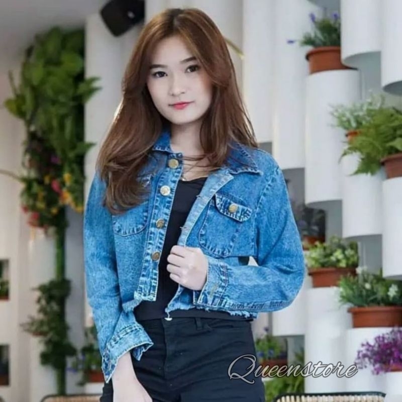 PALING LARIS PROMO 11.11 JAKET JEANS CROP JAKET WANITA RAWIS CEWE CEWE JAKET MURAH