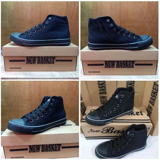 Sepatu Anak NEW BASKET 388 HC Sekolah Sekolah Hitam Tali Resleting Boot Original Ukuran 31-33