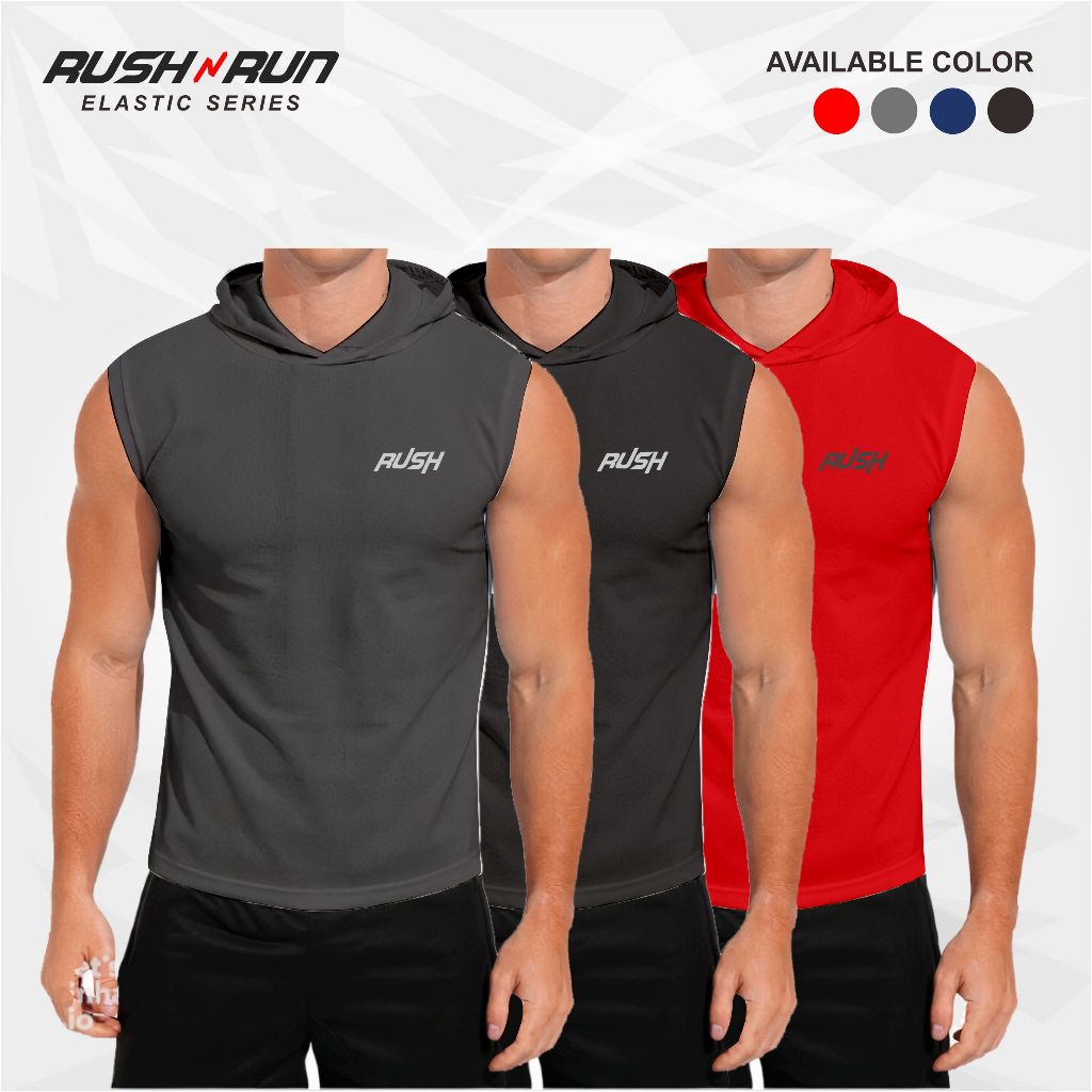 Sleeveless Rush n Run Singlet Hoodie Lekbong Kupluk Olahraga Gym Fitness Workout