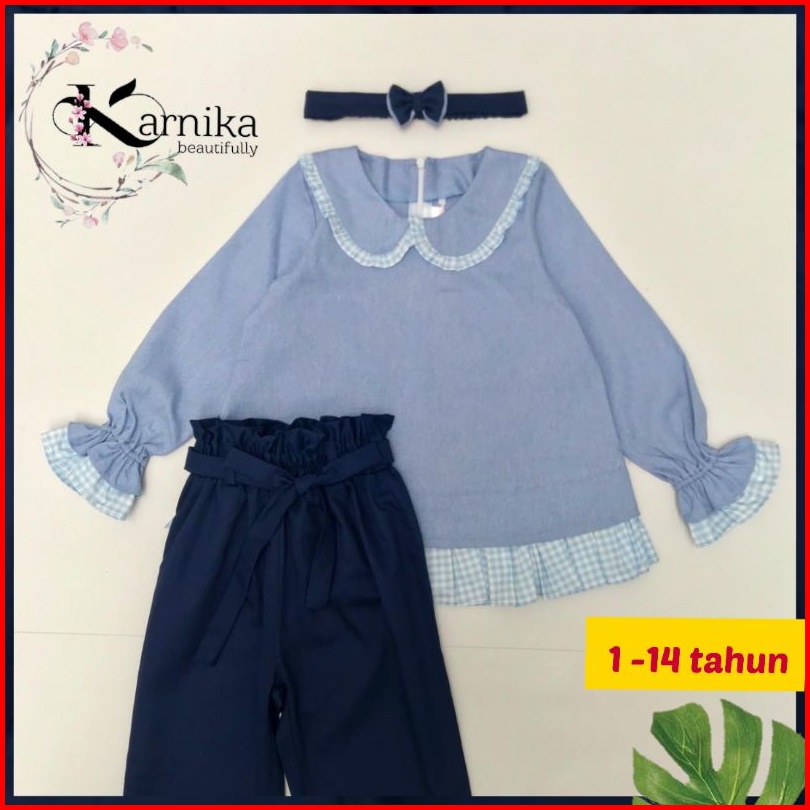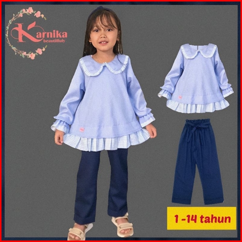 Karnika Baju Anak Perempuan Setelan Atasan Blus Oneset Celana Panjang