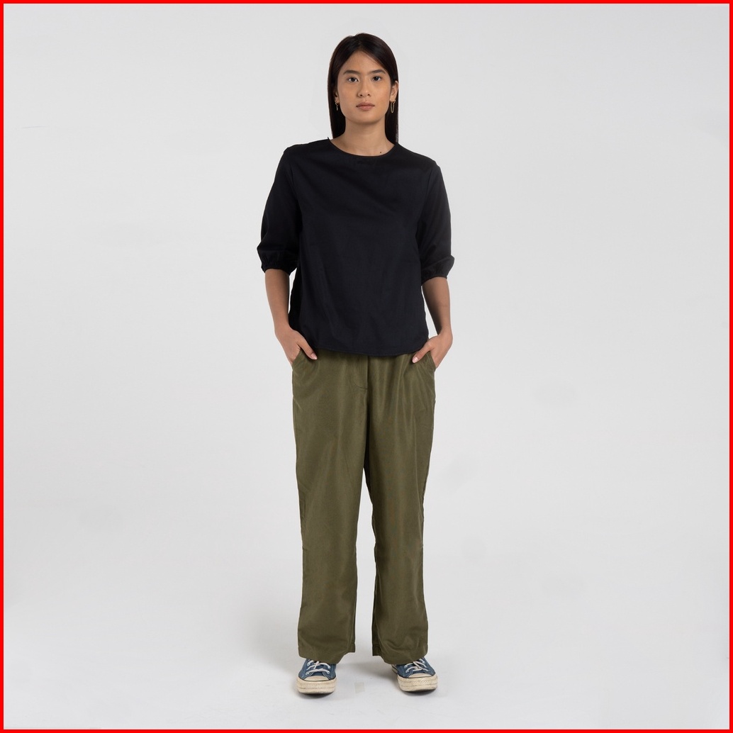 M231 Kemeja Wanita Baloon Top Pendek Hitam 2452c
