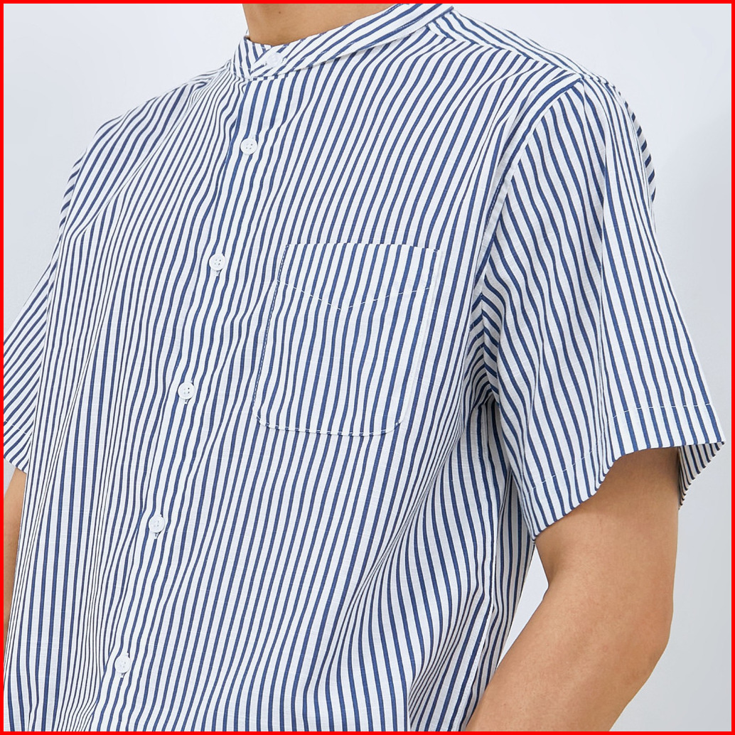 M231 Kemeja Pria Koko Shanghai Stripe Pendek Biru 0087