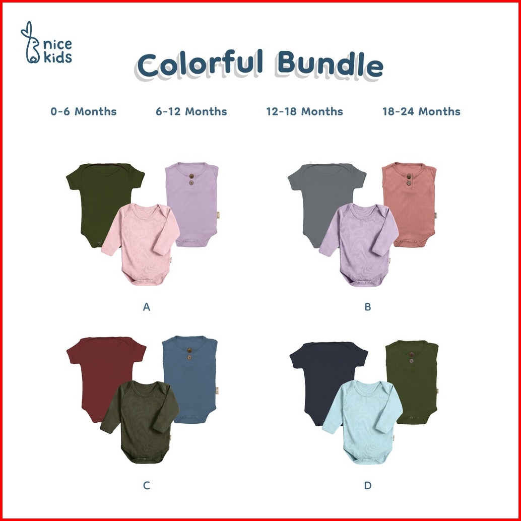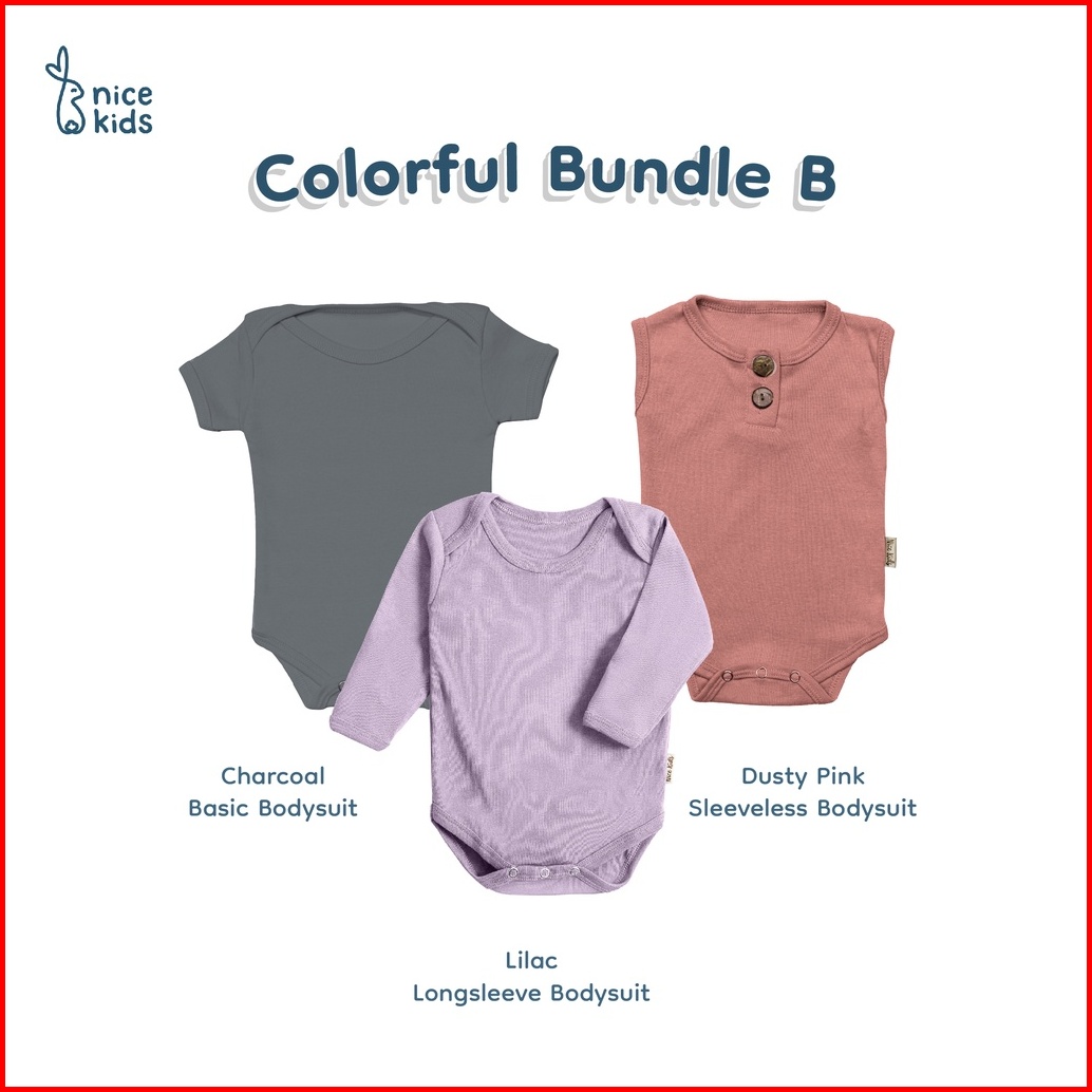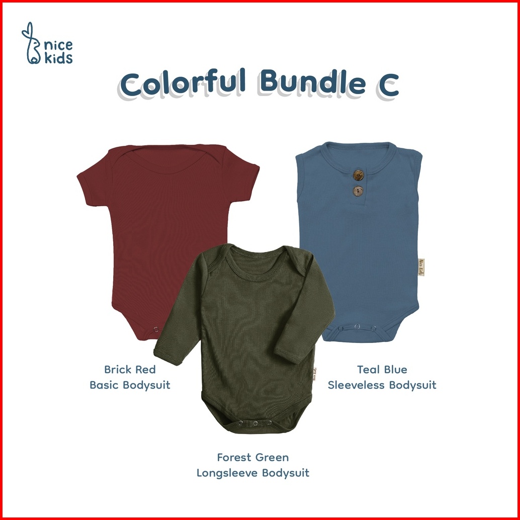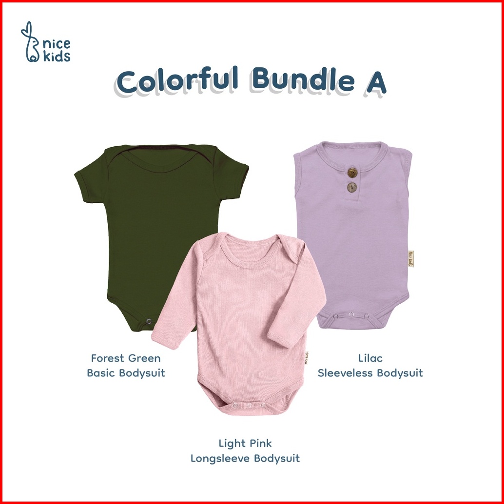 Nice Kids - 3 Pcs Paket Bundle Colorful New Bodysuit Set Onesie Jumper Romper Bayi Baby 0-2 Tahun