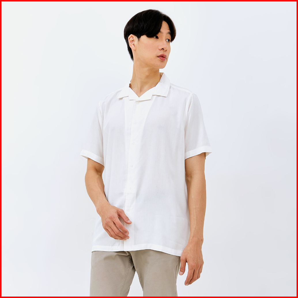 M231 Kemeja Pria Basic Polos Hawaii Pendek Putih 2310b