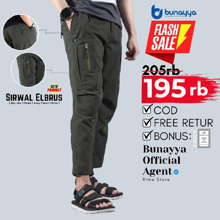 Celana Sirwal Pria Elbrus Bunayya Sunnah Clothing L Bunaya Cargo Tactical Tempur Sholat Pdl Outdoor Ripstop Nyaman - Abu