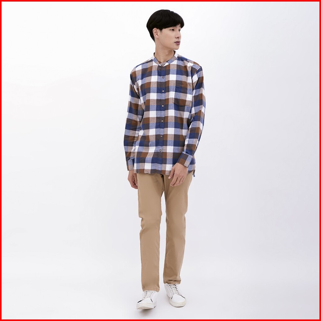 M231 Kemeja Pria Flannel Shanghai Oversized Panjang Coklat 1894a