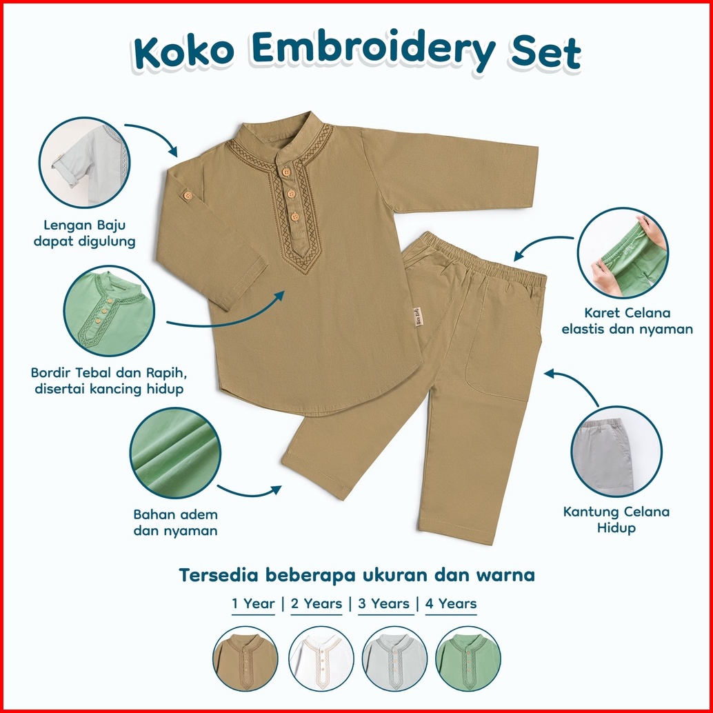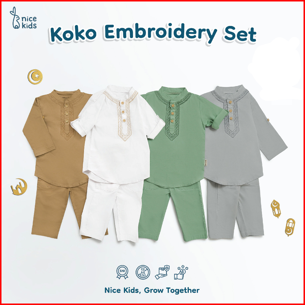 Nice Kids - Koko Embroidery Set Setelan Pakaian Bordir Muslim Lebaran Anak Bayi 1-4 Tahun