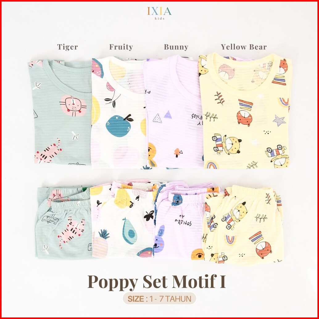 Ixia Kids Poppy Set Motif 1 Baju Setelan Anak Perempuan Laki 1-6 Tahun