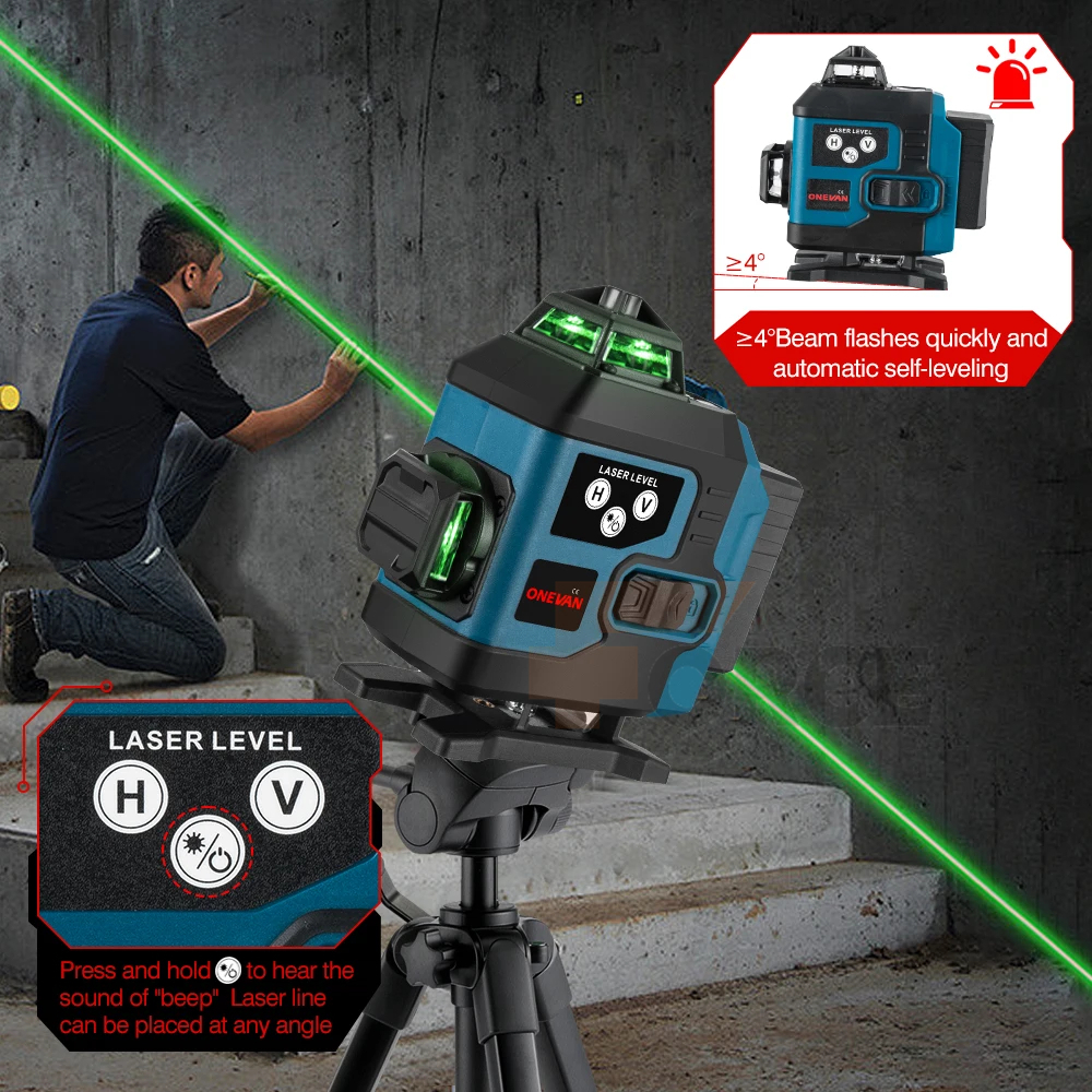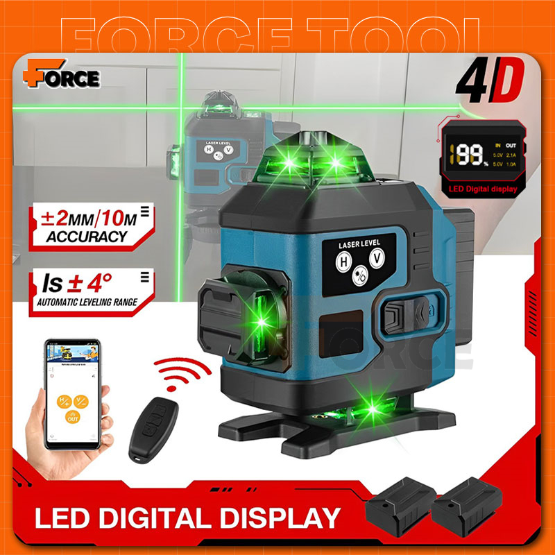 Level laser 4D 16 garis secara otomatis menyesuaikan pengukuran presisi tinggi horizontal dan vertikal 360°