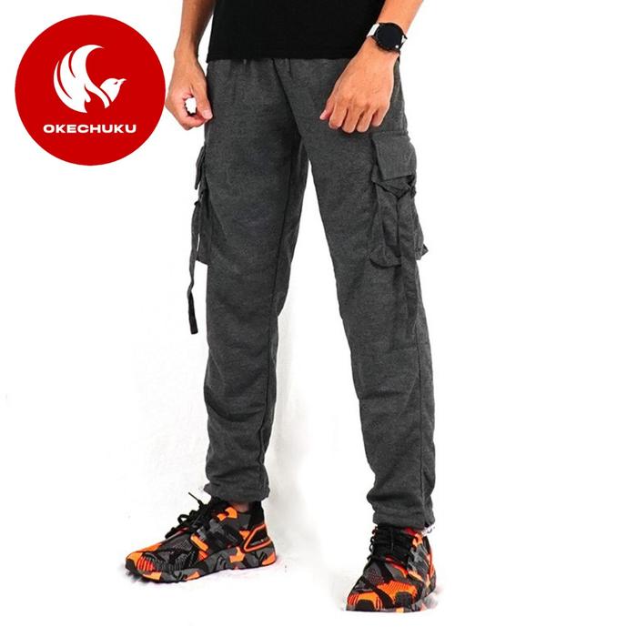 Okechuku Julio Celana Cargo Pria Celana Panjang Pria Cargo Jogger Pria - Hitam, M Fit To L