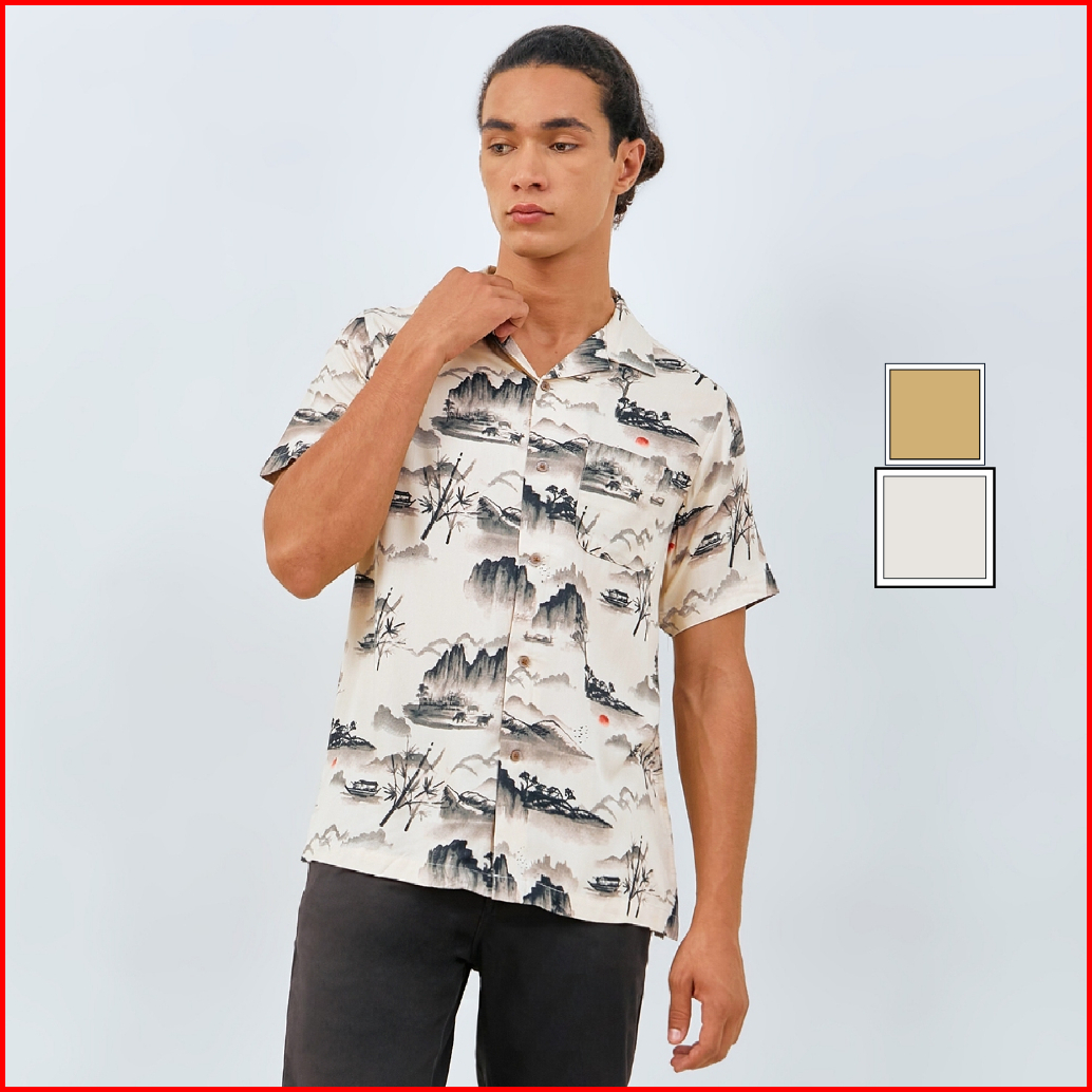 M231 Kemeja Pria Printing Hawaii Pendek New Terrain 0130