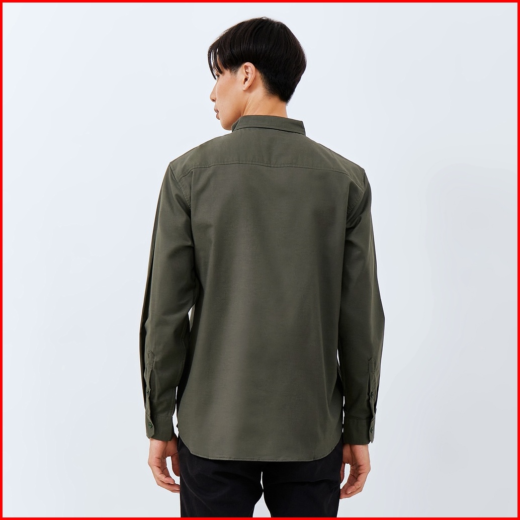 M231 Kemeja Pria Basic Polos Oxford Panjang Hijau Botol 1456t