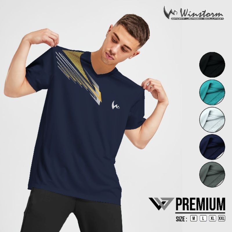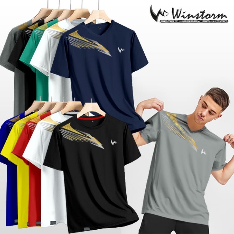 Winstorm SPLIT Kaos Olahraga Polos Dewasa Premium Baju Sport Badminton Lari Gym Fitnes