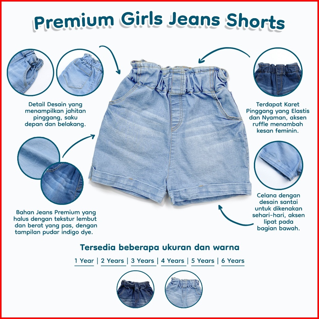 Nice Kids - Premium Girls Jeans Short Baby Celana Pendek Anak Perempuan 1-6 Tahun Bawahan Anak Perempuan Denim