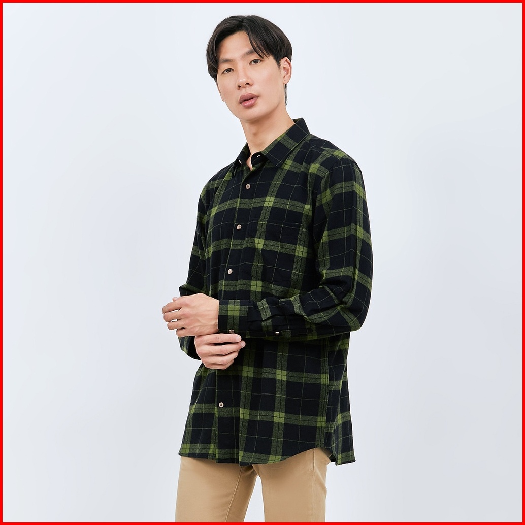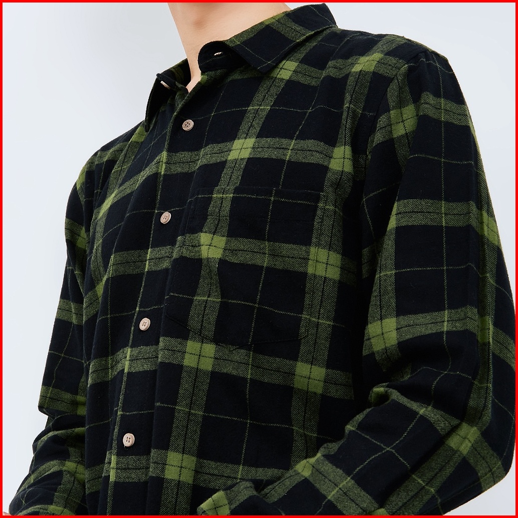 M231 Kemeja Pria Flannel Panjang Hijau 1901b