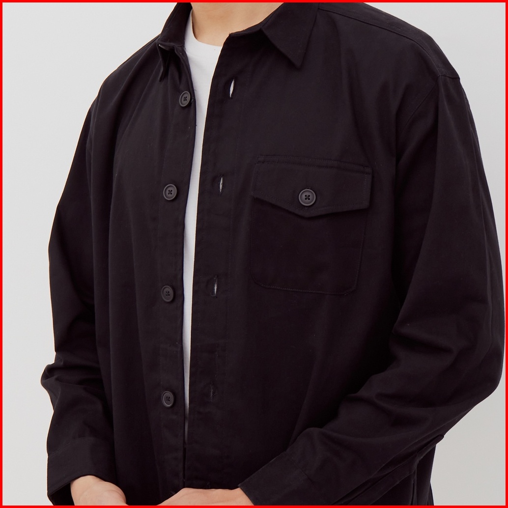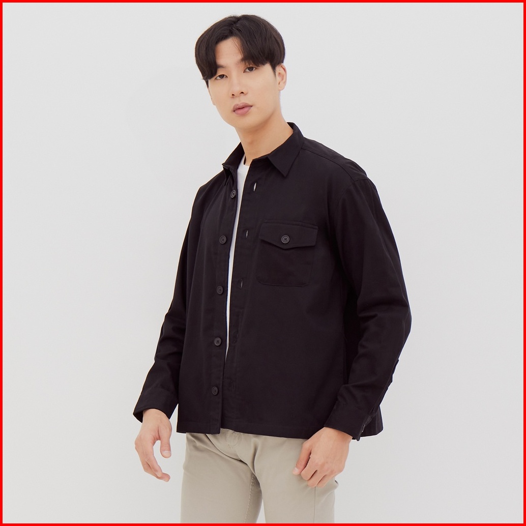 M231 Jaket Over Shirt Pria Panjang Hitam 2269e