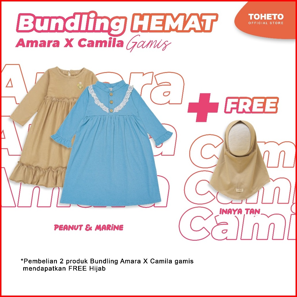 Toheto - Bundling Package Amara Gamis X Camila Gamis Free Hijab Anak 1-4 Tahun