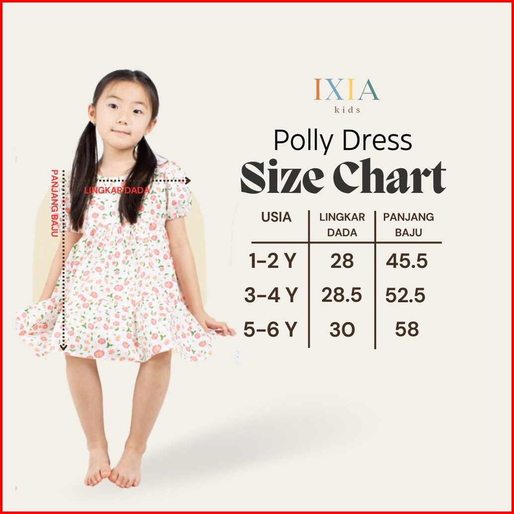 Ixia Kids Polly Dress Baju Dress Anak Perempuan 1-6 Tahun