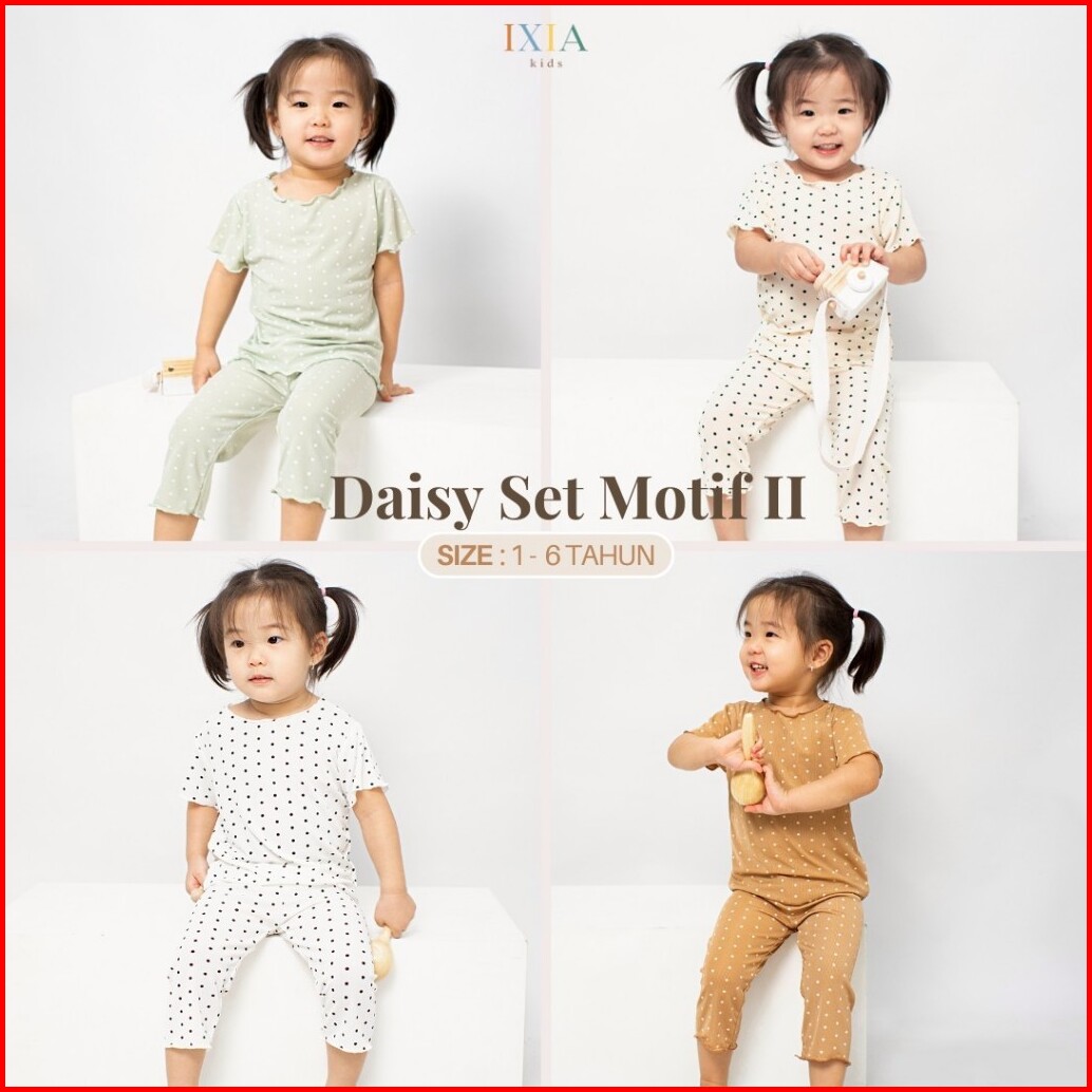 Ixia Kids Daisy Home Set Motif 2 Baju Setelan Piyama Anak Perempuan 1-6 Tahun