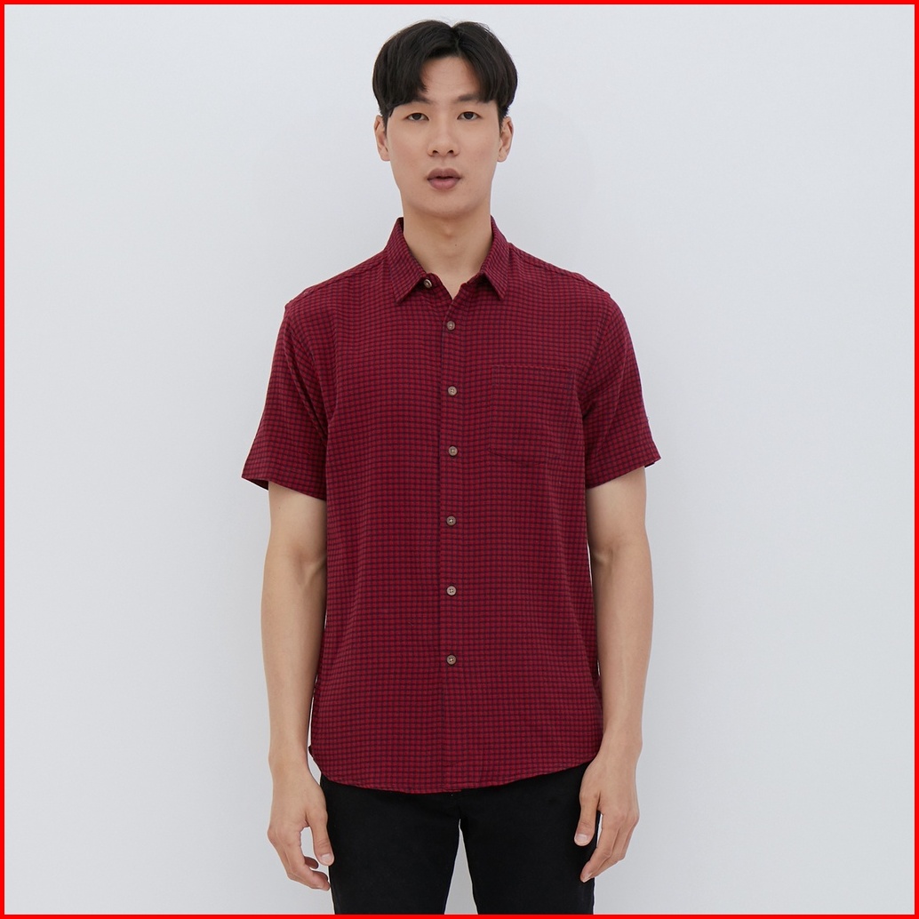 M231 Kemeja Pria Flannel Pendek Maroon 2380