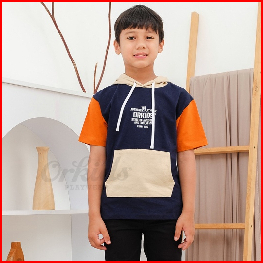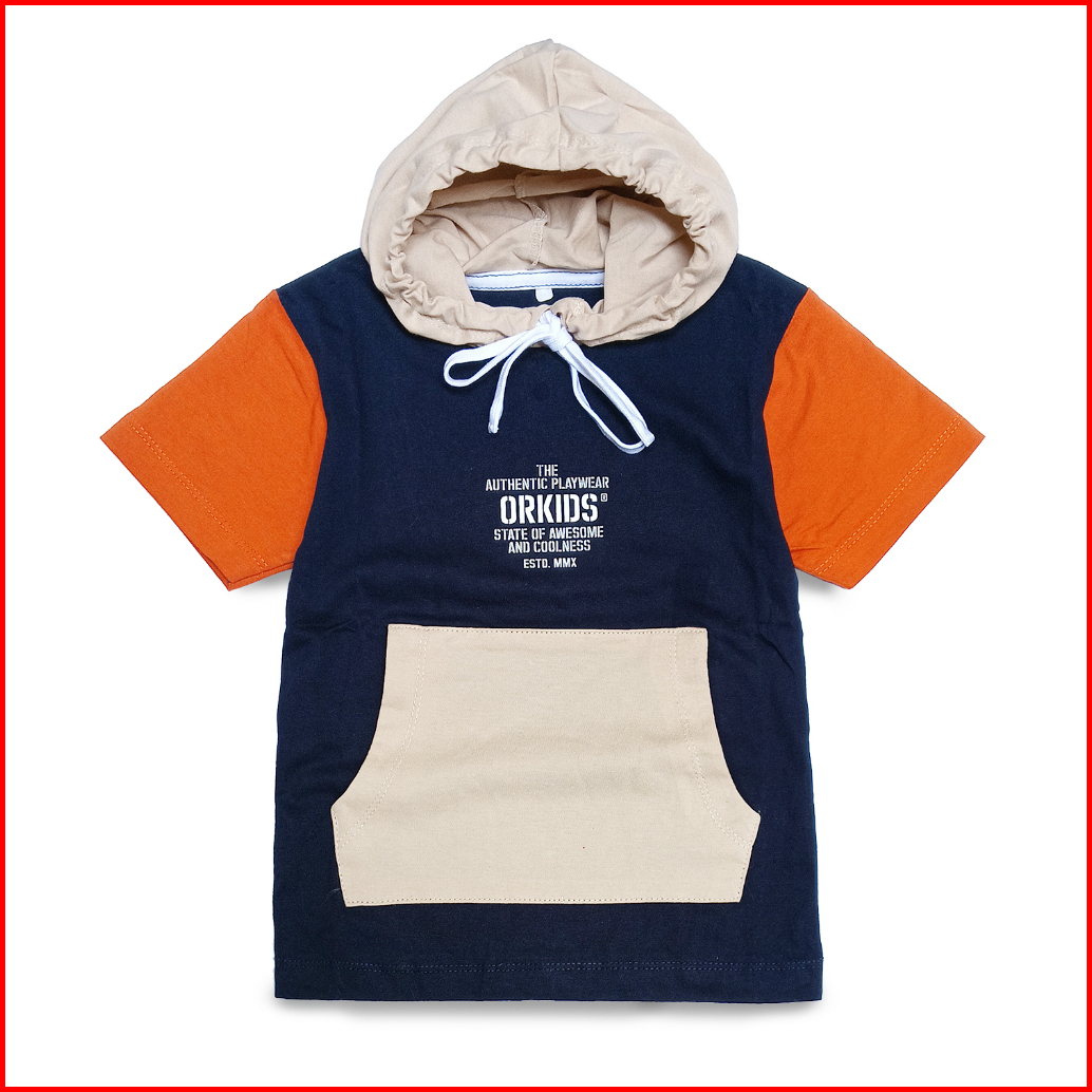 Baju Anak Laki Laki Usia 1-12 Tahun Pakai Hoodie Lengan Pendek Kombinasi Warna Glance Navy Cream