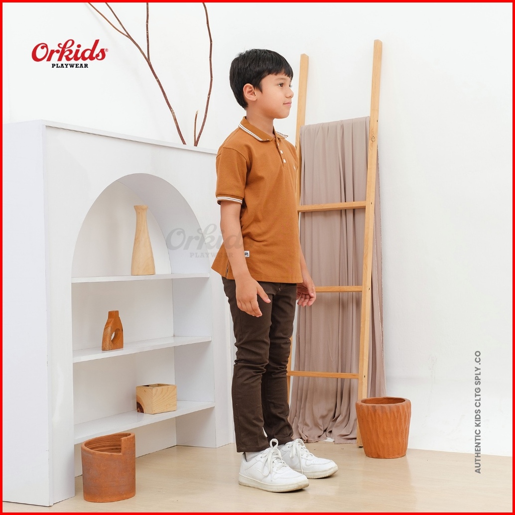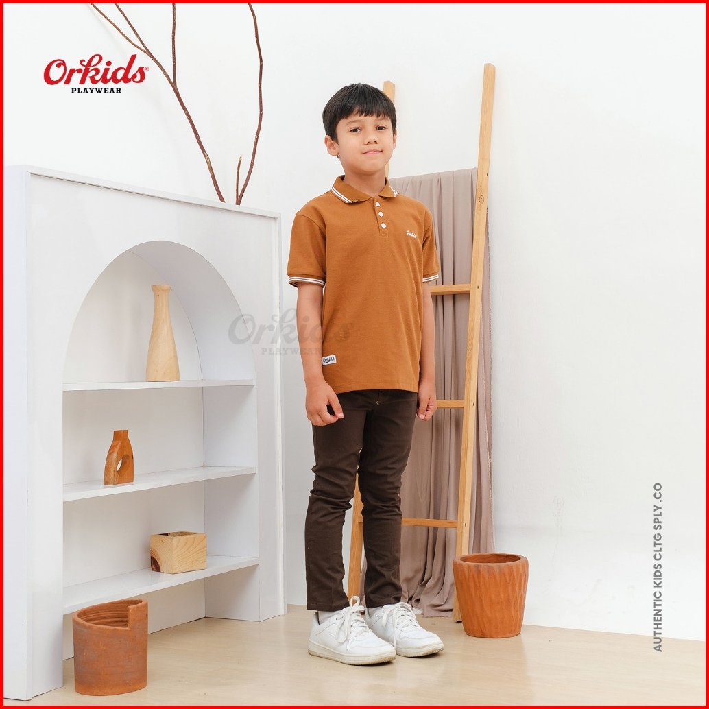 Orkids Kaos Polo Anak Laki-laki Umur 1 - 12 Tahun Baju Kerah Atasan Distro Kids Champ Brown